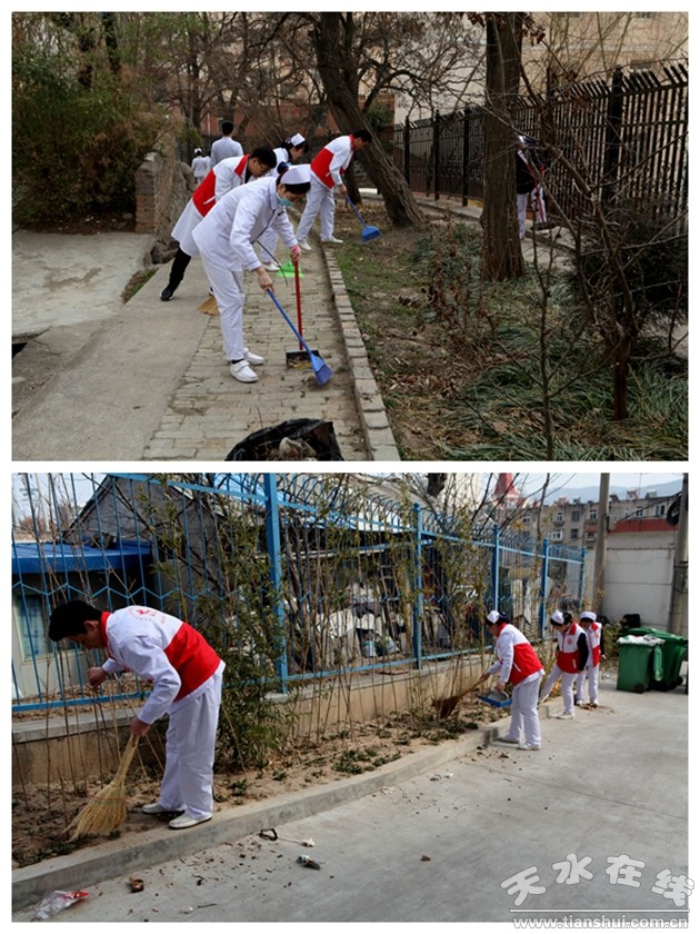 二是組織青年志愿者開展“凈化醫(yī)院環(huán)境”志愿服務活動。3月4日下午院團委組織30余名青年志愿者對院內路面、綠化帶等容易產生垃圾的區(qū)域進行集中清理;顒又,他們不怕苦、不怕臟,撿拾垃圾、煙頭,清掃雜葉、廢紙屑等,不放過任何一處死角,體現(xiàn)了志愿服務精神,營造了干凈整潔的就醫(yī)環(huán)境。