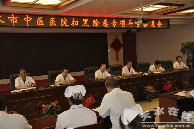 為推進(jìn)全院掃黑除惡專項(xiàng)斗爭工作,嚴(yán)厲打擊醫(yī)療衛(wèi)生領(lǐng)域涉黑涉惡違法犯罪行為,優(yōu)化就醫(yī)診療環(huán)境,切實(shí)維護(hù)正常醫(yī)療秩序,6月10日下午,天水市中醫(yī)醫(yī)院召開了掃黑除惡專項(xiàng)斗爭工作推進(jìn)會(huì),院領(lǐng)導(dǎo)、中層干部和職工代表近100人參加了會(huì)議。黨委書記李曉峰主持會(huì)議。