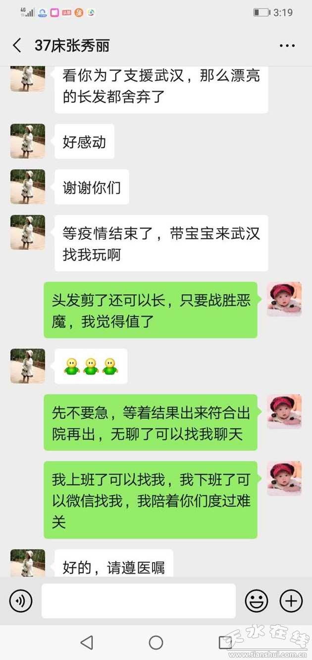 3月4日,天水在線通過(guò)微信聯(lián)系到天水市第三批馳援武漢的醫(yī)療隊(duì)員——來(lái)自天水市第四人民醫(yī)院的李彥霞護(hù)士,她目前正在武漢開(kāi)發(fā)區(qū)沌口方艙醫(yī)院戰(zhàn)“疫”。