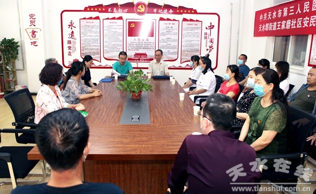 為紀(jì)念建黨99周年,實現(xiàn)黨組織之間的優(yōu)勢互補和資源共享,提升基層黨建工作水平,6月29日上午,市三院黨委組織部分黨員走進王家磨社區(qū)安民小區(qū)黨支部開展紀(jì)念建黨99周年結(jié)對共建“主題黨日” 活動。市三院黨委副書記、院長李剛帶隊,30名黨員志愿者參加活動。