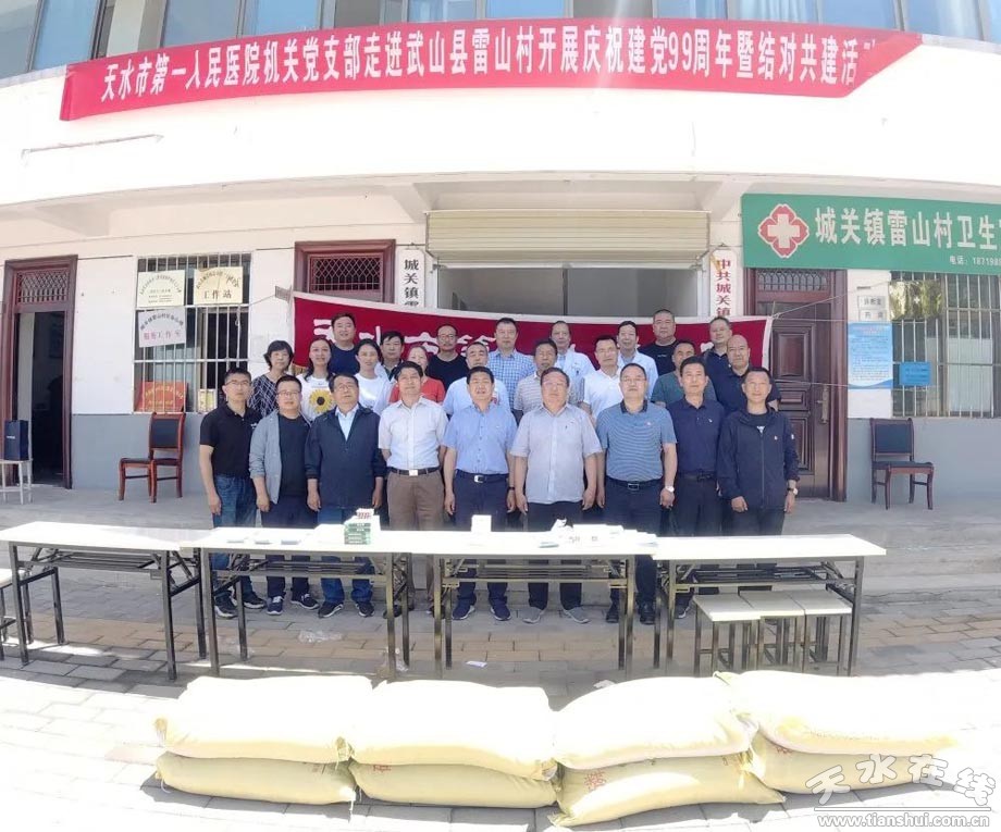 為響應(yīng)黨中央和習(xí)近平總書記全力以赴沖刺脫貧攻堅(jiān)“最后一公里”的號(hào)召,在中國共產(chǎn)黨成立99周年來臨之際,天水市一院黨委班子全體成員帶領(lǐng)我院20名幫扶責(zé)任人和5位醫(yī)療專家,于2020年6月24日來到武山縣城關(guān)鎮(zhèn)雷山村開展“醫(yī)院機(jī)關(guān)黨支部走進(jìn)雷山村開展慶祝建黨99周年暨黨建共建活動(dòng)”。
