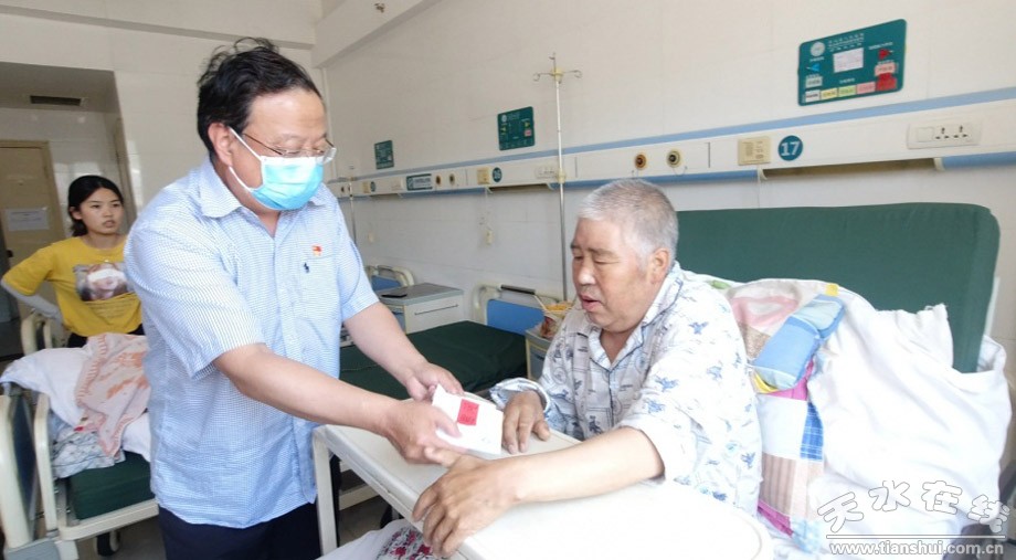 緊接著,在城關(guān)鎮(zhèn)武裝部長羅應(yīng)民、第一書記王晨陽的帶領(lǐng)下,問肅生書記趕到我院資助修建的第二條產(chǎn)業(yè)路的現(xiàn)場進(jìn)行了實(shí)地考察,并對(duì)該項(xiàng)工作給予了充分肯定。在中午時(shí)分,問肅生書記又馬不停來到武山縣人民醫(yī)院康復(fù)科看望因腦出血住院的雷山村村委副書記徐五德同志。當(dāng)看到徐五德書記病情已有所好轉(zhuǎn),右側(cè)肢體已經(jīng)能夠自主活動(dòng)時(shí)問書記非常高興,急忙鼓勵(lì)徐書記要增強(qiáng)信心、戰(zhàn)勝病魔,并祝福他早日出院!徐五德書記及其家人對(duì)問肅生書記一行的到來表示感謝并表示一定會(huì)積極配合醫(yī)生的治療,爭取早日康復(fù)!