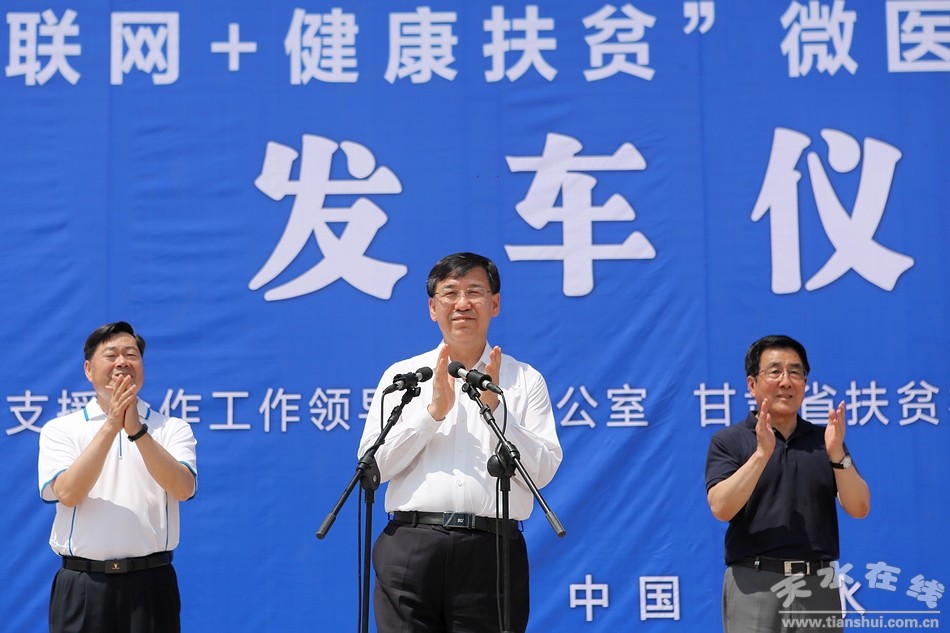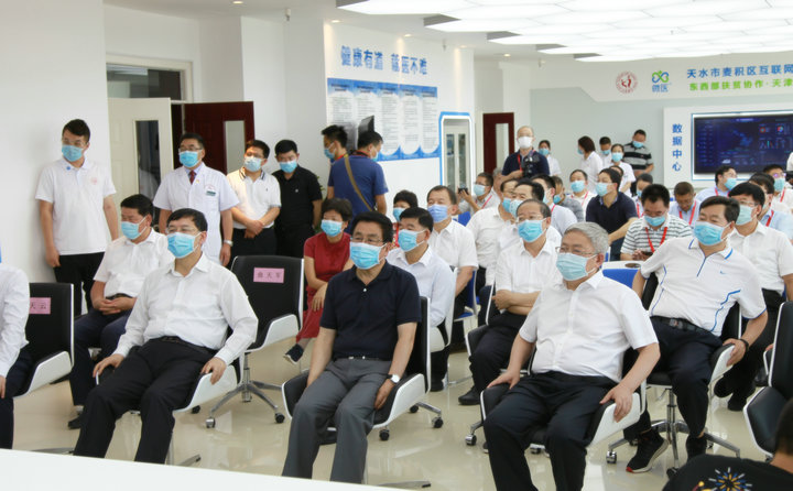 7月28日下午,省委書記、省人大常委會主任林鐸,國務(wù)院扶貧開發(fā)領(lǐng)導(dǎo)小組副組長、國務(wù)院扶貧辦主任劉永富,國務(wù)院扶貧辦副主任洪天云,天津市委副書記陰和俊,甘肅省委副書記孫偉,常務(wù)副省長宋亮在甘肅省政協(xié)副主席、天水市委書記王銳、天水市市長王軍的陪同下,深入天水市中西醫(yī)結(jié)合醫(yī)院(市二院)調(diào)研“東西部扶貧協(xié)作·天津市對口幫扶項目——天水市麥積區(qū)互聯(lián)網(wǎng)+醫(yī)療健康平臺”的建設(shè)運行情況。國務(wù)院扶貧辦和甘肅省委、省政府,天津市委、市政府領(lǐng)導(dǎo)及兩地企業(yè)家約150余人參加了調(diào)研。