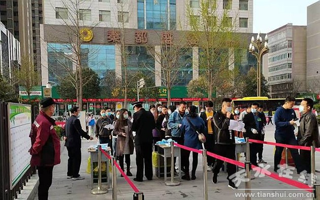 為進(jìn)一步落實(shí)疫情防控常態(tài)化防控措施,根據(jù)市委組織部、市衛(wèi)健委的要求,天水市疾病預(yù)防控制中心及時召開專題會議,進(jìn)行研究部署,緊密結(jié)合當(dāng)前疫情實(shí)際,研究制定了疫情防控方案。同時抽調(diào)8名專業(yè)技術(shù)人員,組成4支疫情防控應(yīng)急組,具體負(fù)責(zé)各考點(diǎn)疫情防控工作,并于3月26日分別對各考點(diǎn)疫情防控工作進(jìn)行現(xiàn)場技術(shù)指導(dǎo)和人員培訓(xùn)。27日,應(yīng)急組按時到達(dá)各考點(diǎn),認(rèn)真開展體溫檢測、環(huán)境消毒等疫情防控工作,有效保證了考試工作順利進(jìn)行。