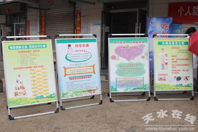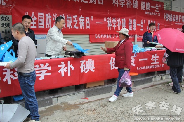 在此次宣傳活動中,各相關(guān)部門通力合作,各司其責,宣傳氛圍濃厚,內(nèi)容形式多樣,達到了預期的宣傳目的。據(jù)統(tǒng)計,活動現(xiàn)場共懸掛橫幅4條,擺放移動展牌10塊;宣傳過程中發(fā)放碘缺乏病防治手提袋200余件、儲鹽罐100只、毛巾100條;宣傳折頁500余份、宣傳畫500余張、各種宣傳單1000余張;免得發(fā)放碘鹽100余袋。此外我中心通過天水疾控微信公眾號發(fā)布《碘缺乏病健康教育知識》、《碘缺乏病防治知識》和《碘缺乏病防治核心信息》等多篇碘缺乏病防治文章,并在天水晚報健康周刊欄目刊登《科學補碘、健康一生》專訪文章。