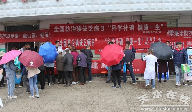 5月15日是我國第28個“防治碘缺乏病日”。今年的活動主題是“科學補碘,健康一生”。為持續(xù)鞏固地方病防治專項三年攻堅行動成果,推動實現(xiàn)《健康中國行動(2019-2030年)》中碘缺乏病防治有關(guān)目標,進一步提高公眾對碘缺乏病防治工作的認識,加快推進健康中國建設(shè),5 月 14日,由天水市衛(wèi)健委、市疾控中心、秦州區(qū)衛(wèi)健局、秦州區(qū)疾控中心、秦州區(qū)鹽業(yè)配送中心等部門聯(lián)合主辦的天水市第 28 個“防治碘缺乏病日”宣傳活動天水市主會場在我市秦州區(qū)娘娘壩鎮(zhèn)隆重舉行。