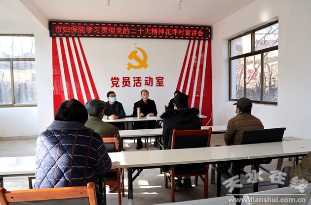 為深入學(xué)習(xí)宣傳貫徹黨的二十大精神,切實(shí)把幫扶工作思想和行動統(tǒng)一到市委、市政府鞏固拓展脫貧攻堅(jiān)成果同鄉(xiāng)村振興有效銜接的部署要求上來,1月9日,市婦幼保健院黨委委員、副院長陳元前帶隊(duì)到幫扶村武山縣城關(guān)鎮(zhèn)花坪村開展黨的二十大精神宣講暨春節(jié)期間困難群眾慰問活動。