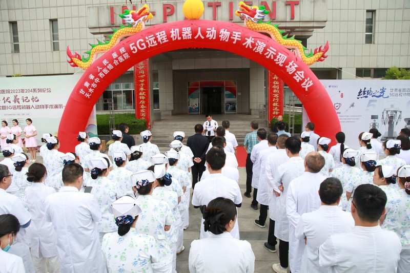 6月16日至18日,由甘肅省普通外科質(zhì)量控制中心、甘肅省普通外科臨床醫(yī)學(xué)中心、甘肅省人民醫(yī)院主辦,天水市中西醫(yī)結(jié)合醫(yī)院(市二院)承辦的甘肅省人民醫(yī)院2023年204系列論壇“伏羲記憶”胃癌數(shù)據(jù)庫建設(shè)學(xué)術(shù)沙龍暨5G遠(yuǎn)程機(jī)器人動(dòng)物手術(shù)演示活動(dòng)在市二院舉辦。特邀西京醫(yī)院消化外科主任李曉華教授,甘肅省人民醫(yī)院干部病房外科主任蘇河教授、普外科(西院區(qū))主任顧遠(yuǎn)暉教授、普外一病區(qū)胃腸胰病區(qū)主任馬云濤教授、普外三病區(qū)副主任張琰教授和市二院副院長姚雄兵教授等知名專家及天水電信分公司副總經(jīng)理張紹鵬出席論壇。論壇由市二院腫瘤科主任胡運(yùn)洲主持。省內(nèi)外專家學(xué)者及天水周邊醫(yī)學(xué)同仁約160余人參加。
