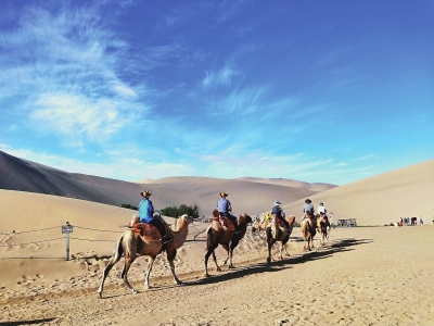 世界文化遺產(chǎn)莫高窟自7月21日以來,已連續(xù)多日發(fā)布門票售罄公告,各類參觀門票達到疫情防控要求正常承載量50%的銷售限額,停止發(fā)售,其中A類參觀票在8月21日前已全部售罄。國家5A級景區(qū)鳴沙山月牙泉8月4日當天游客接待量達1.55萬人次,創(chuàng)今年景區(qū)游客單日接待量新高。盡管酷熱炎炎,依舊阻擋不住游客的熱情和腳步。大家爬山賞景騎駱駝,感受美麗風光和休閑時光,長長的駝隊和綿延的沙山在藍天下蔚為壯觀。