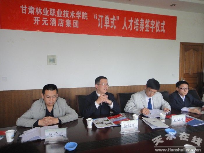 5月10至11日,甘肅林業(yè)職業(yè)技術(shù)學(xué)院分別與蘇州知音飲服公司、開元酒店集團簽訂訂單式人才培養(yǎng)協(xié)議。出席學(xué)院與蘇州知音飲服公司簽字儀式的有蘇州飲服公司人事部經(jīng)理左文華,該院副院長冉福祥,林業(yè)工程系負(fù)責(zé)人及相關(guān)教師。參加學(xué)院與開元酒店集團簽字儀式的有象山石浦開元大酒店總經(jīng)理助理徐培軍、人事經(jīng)理魏政敏,學(xué)院副院長冉福祥,林業(yè)工程系負(fù)責(zé)人及相關(guān)教師。簽字儀式由林業(yè)工程系主任趙子忠主持。