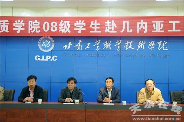 5月16日晚,甘肅工職學(xué)院赴幾內(nèi)亞參加地質(zhì)項(xiàng)目合作的12名師生,在院領(lǐng)導(dǎo)及有關(guān)部門簡短的歡送儀式后,乘坐校車離開學(xué)校,開始了他們?yōu)槠诎肽甑膶ν夤ぷ鳌?/P>