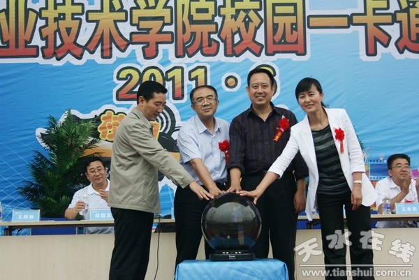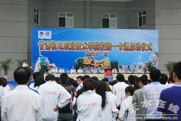 啟動儀式上,由省工信委副主任馬蘇平,市工信委主任王祥林,院黨委書記、院長李宗義及甘肅移動公司客戶部副總經(jīng)理郭益宏共同啟動了甘肅機電職業(yè)技術(shù)學(xué)院“校園一卡通”。