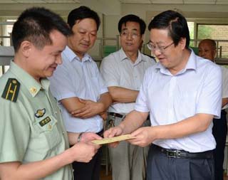 楚天金報訊 金報訊 記者廖橋 特約記者趙龍 實習生周顏佳、吳寒報道:4名身穿校服的小伙子合力扛起一塊大幅“喜報”,一名胸戴大紅花的男生穿過天窗站立在一輛黑色轎車中,緊隨其后的是數(shù)十人組成的腰鼓隊,鬧市區(qū)行人紛紛駐足圍觀(如圖)。昨日,一則“恩施狀元游街”的微博引來眾多網(wǎng)友圍觀。