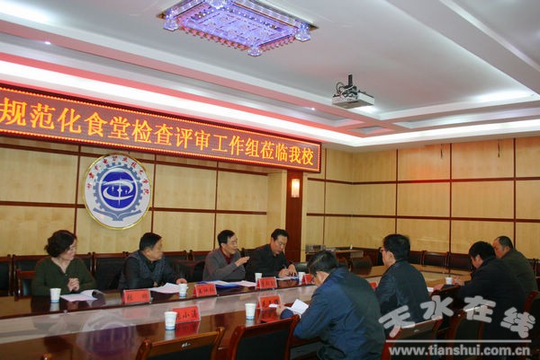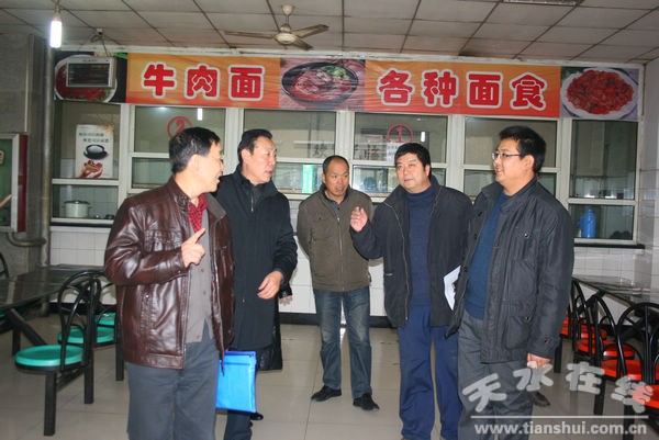 12月19日,由省工信委培訓(xùn)處張琳主任帶隊(duì),省政府機(jī)關(guān)事務(wù)管理協(xié)會(huì)秘書長(zhǎng)董尉勤、省政府機(jī)關(guān)事務(wù)管理局房產(chǎn)中心主任王汝仁、建設(shè)廳機(jī)關(guān)服務(wù)中心主任劉玉璽組成的省政府機(jī)關(guān)事務(wù)管理局規(guī)范化食堂評(píng)審工作組一行4人來甘肅機(jī)電職業(yè)技術(shù)學(xué)院進(jìn)行食堂標(biāo)準(zhǔn)化評(píng)審工作。學(xué)院院長(zhǎng)張炯、副院長(zhǎng)毛文輝及后勤處和飲食服務(wù)中心負(fù)責(zé)人陪同檢查。
