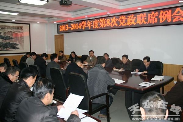 12月23日上午,甘肅林業(yè)職業(yè)技術(shù)學(xué)院召開了2013-2014學(xué)年度第八次黨政聯(lián)席例會,學(xué)院領(lǐng)導(dǎo)朱勇虎、陳逸平、高云峰、姚德生、鞏文、虎保成、程國保、王存孝及學(xué)院中層黨政正職參加了會議。會議由黨委書記朱勇虎同志主持。