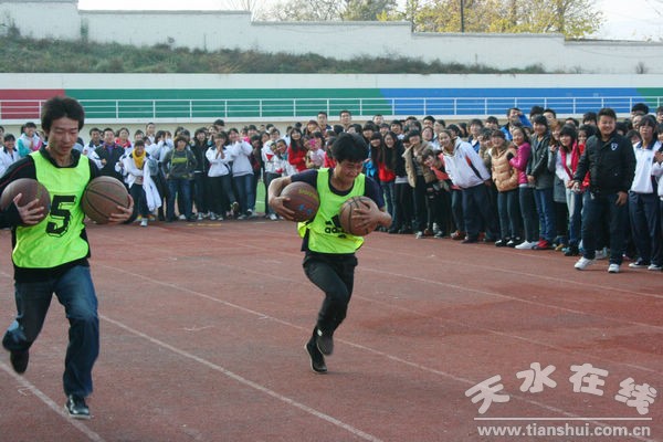 趣味體育比賽現場氣氛熱烈,宿舍成員團結協作,齊心協力向前沖。