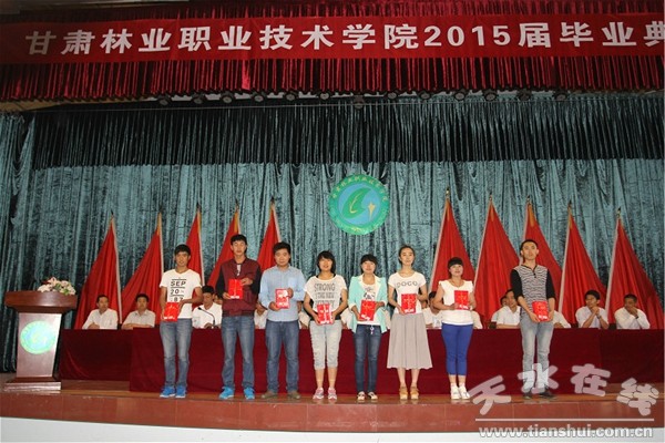 典禮上,冉福祥宣讀了《甘肅林業(yè)職業(yè)技術(shù)學(xué)院關(guān)于表彰吳永紅等135名優(yōu)秀畢業(yè)生的決定》,院領(lǐng)導(dǎo)為優(yōu)秀畢業(yè)生代表頒發(fā)了榮譽(yù)證書。曾亞萍同學(xué)代表畢業(yè)生在大會(huì)上做了發(fā)言。