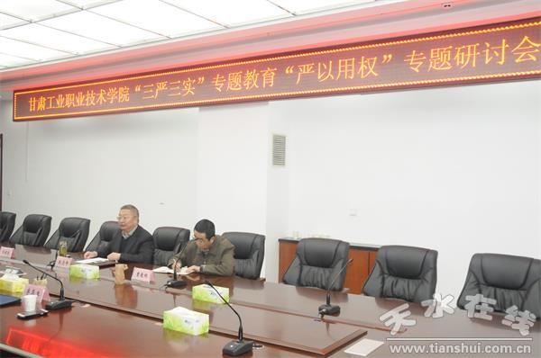 11月13日下午,甘肅工業(yè)職業(yè)技術(shù)學(xué)院黨委中心組召開學(xué)習(xí)研討會,圍繞“三嚴(yán)三實(shí)”專題教育中“嚴(yán)以用權(quán)”的主題開展研討交流。校黨委書記王志年主持研討會,校黨委班子成員分別圍繞“嚴(yán)以用權(quán)”主題,結(jié)合思想工作實(shí)際作專題發(fā)言進(jìn)行交流,各黨務(wù)部門負(fù)責(zé)人及各黨總支書記參加了會議。