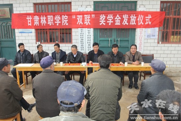 11月24日,甘肅林職學(xué)院雙聯(lián)辦公室人員和石佛鎮(zhèn)黨委副書記、紀(jì)委書記吳富強(qiáng)一行,前往該院聯(lián)系的石佛鎮(zhèn)三陽村、澗溝村、周半村,為三個村今年考上大學(xué)的39名學(xué)生,按照本科每人2000元,專科每人1000元的標(biāo)準(zhǔn)發(fā)放了“雙聯(lián)”獎學(xué)金。自從2012年雙聯(lián)工作開展以來,我院已累計為三個村考上大學(xué)的51名本科生,64名?粕,發(fā)放“雙聯(lián)”獎學(xué)金共計16.6萬元。