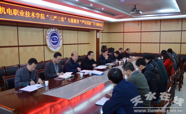 11月27日上午,甘肅機(jī)電職業(yè)技術(shù)學(xué)院黨委在二樓會(huì)議室召開(kāi)“三嚴(yán)三實(shí)”專(zhuān)題教育“嚴(yán)以用權(quán)”第二次學(xué)習(xí)研討會(huì)。黨委書(shū)記李宗義主持會(huì)議并講話(huà)。學(xué)院領(lǐng)導(dǎo)班子成員、黨委工作部副部長(zhǎng)、各黨支部書(shū)記和有關(guān)部門(mén)負(fù)責(zé)人參加會(huì)議。