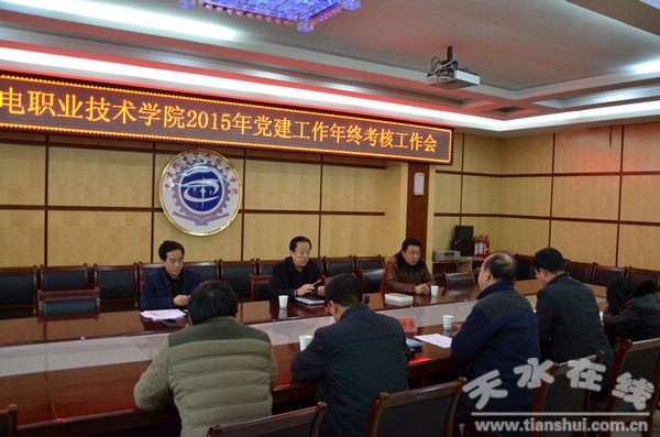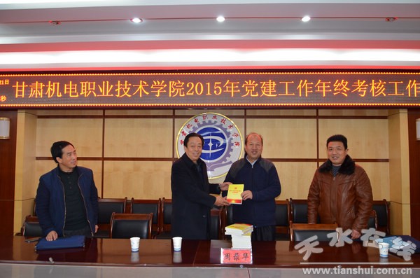 12月21日下午,天水市直機(jī)關(guān)工委副書記周錄華一行三人蒞臨甘肅機(jī)電職業(yè)技術(shù)學(xué)院,檢查考核學(xué)院2015年黨建工作。黨委副書記、副院長王芳弟主持召開考核匯報(bào)會(huì)并匯報(bào)學(xué)院2015年黨建工作,黨委辦公室等部門負(fù)責(zé)人參加考核匯報(bào)會(huì)。