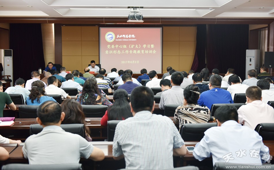 6月2日下午,天水師范學(xué)院在行政樓605會(huì)議室舉行意識(shí)形態(tài)工作專題培訓(xùn)會(huì),邀請(qǐng)甘肅省委黨校肖安鹿教授作了題為《牢牢把握意識(shí)形態(tài)工作的領(lǐng)導(dǎo)權(quán)、管理權(quán)和話語權(quán)》的報(bào)告。在家黨委常委,全體中層干部和思想政治理論課教師參加專題培訓(xùn)會(huì)。