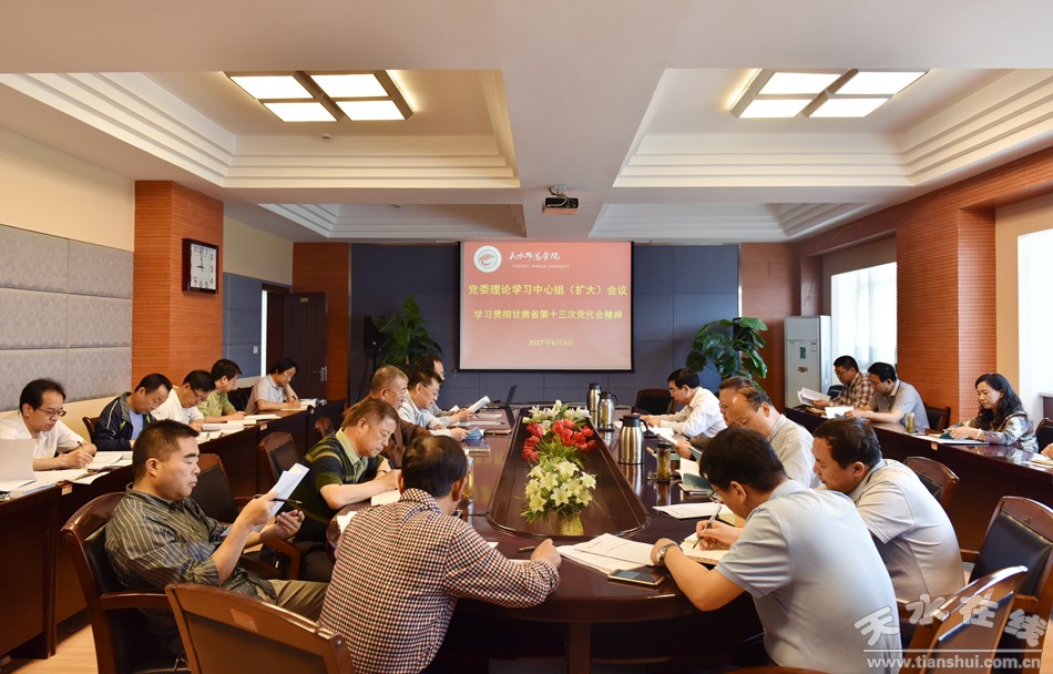 6月5日上午,天水師范學(xué)院在行政樓412會議室召開黨委中心組學(xué)習(xí)(擴(kuò)大)會議,專題學(xué)習(xí)省第十三次黨代會精神。在家黨委常委、兩委委員、各二級學(xué)院黨總支和直屬黨支部書記參加會議,會議由黨委副書記師平安主持。