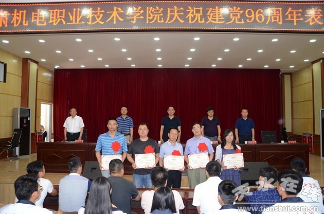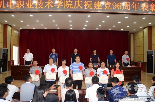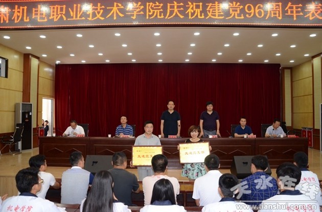 黨委書記李宗義在表彰大會上作講話,全面回顧了中國共產(chǎn)黨從誕生到現(xiàn)在走過的96年光輝歷程,展望了學院事業(yè)發(fā)展的光明前景,闡述了我省第十三次黨代會精神。他指出,貫徹落實省十三次黨代會精神,促進學院又好又快發(fā)展,我們未來的任務(wù)更加艱巨,挑戰(zhàn)更加嚴峻。我們必須時刻保持共產(chǎn)黨人的執(zhí)著追求精神,各黨支部、各位共產(chǎn)黨員必須堅定信念、牢記使命,以全面推進“兩學一做”學習教育常態(tài)化制度化為抓手,在教學、科研和社會服務(wù)中充分發(fā)揮堡壘、標桿和旗幟的作用,在新的時代里譜寫機電學院的美好樂章。