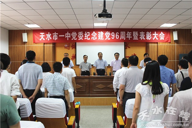 7月2日下午,天水市一中黨委在學(xué)校綜合樓一樓報(bào)告廳隆重舉行了紀(jì)念建黨96周年暨表彰大會(huì),全體黨員準(zhǔn)時(shí)參加,校長(zhǎng)李強(qiáng)主持大會(huì)。
