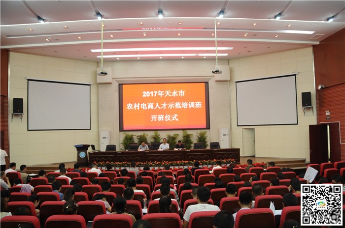 7月24日上午,2017年天水市農村電商人才示范培訓班開班儀式在甘肅工業(yè)職業(yè)技術學院新圖書館5樓報告廳隆重開幕。來自天水市各區(qū)縣的大學生村官和駐村干部共100人參加此次培訓。開班儀式由市商務局副書記李曉東主持。