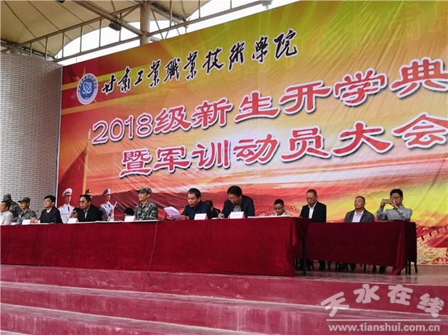 9月10日上午,甘肅工業(yè)職業(yè)技術(shù)學(xué)院在該校田徑操場舉行2018級新生開學(xué)典禮暨軍訓(xùn)動員大會,該校校領(lǐng)導(dǎo)楊聲、郭建忠、魯挑建、李玉生,各部門各學(xué)院負責(zé)人及授訓(xùn)部隊有關(guān)領(lǐng)導(dǎo)出席大會。