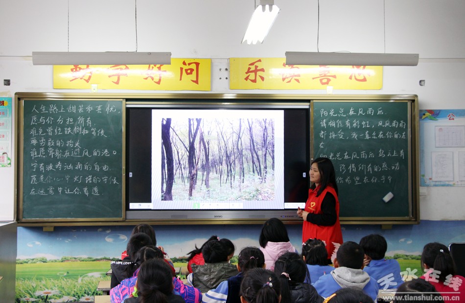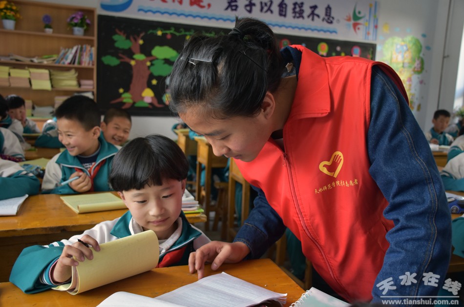 2月25日,在新學(xué)期開學(xué)之際,學(xué)校65名志愿者分赴天水市棗園巷小學(xué)、五里鋪小學(xué)和七里墩小學(xué)開展愛心支教活動(dòng),幫助學(xué)生制定新學(xué)期學(xué)習(xí)計(jì)劃,對(duì)因父母雙方外出打工而造成心理不適的留守兒童進(jìn)行心理輔導(dǎo)。志愿者們還通過剪紙、繪畫、書法、“我來表演你來猜”等活動(dòng)引導(dǎo)孩子們牢記社會(huì)主義核心價(jià)值觀、描繪“夢(mèng)想未來”,感受關(guān)愛與溫暖,體會(huì)價(jià)值與夢(mèng)想。
