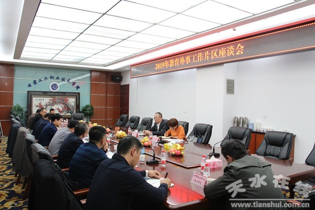10月17日,2019年省教育廳教育外事工作隴東南片區(qū)座談會(huì)在甘肅工業(yè)職業(yè)技術(shù)學(xué)院召開,來自天水師范學(xué)院、甘肅醫(yī)學(xué)院、隴南師范高等專科學(xué)校、甘肅林業(yè)職業(yè)技術(shù)學(xué)院、甘肅機(jī)電職業(yè)技術(shù)學(xué)院和甘肅工業(yè)職業(yè)技術(shù)學(xué)院的隴東南片區(qū)高校負(fù)責(zé)人參加會(huì)議。該校校長曹愛明和外事專辦員參加。