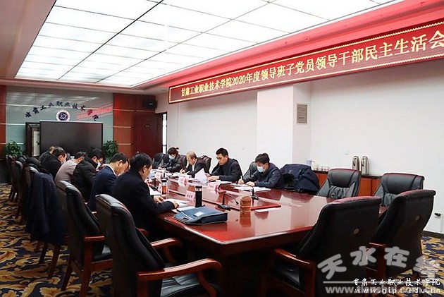 1月14日,甘肅工業(yè)職業(yè)技術(shù)學(xué)院在學(xué)校圖書館四樓會(huì)議室召開2020年度領(lǐng)導(dǎo)班子民主生活會(huì)。會(huì)議以認(rèn)真學(xué)習(xí)貫徹習(xí)近平新時(shí)代中國(guó)特色社會(huì)主義思想,加強(qiáng)政治建設(shè),提高政治能力,堅(jiān)守師生情懷,凝心聚力,為打造“技能甘肅”和“雙高!苯ㄔO(shè)提供堅(jiān)強(qiáng)的組織保障為主題,聯(lián)系推動(dòng)學(xué)校改革發(fā)展實(shí)際,聯(lián)系個(gè)人思想和工作實(shí)際,進(jìn)行自我檢查、黨性分析,開展批評(píng)和自我批評(píng)。
