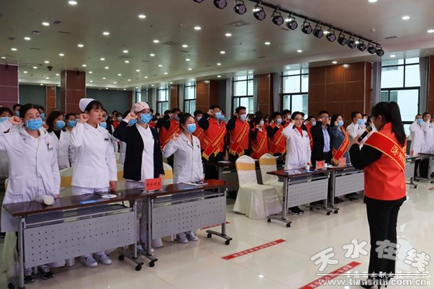 為動(dòng)員和凝聚更多的熱血青年服務(wù)社會(huì)、奉獻(xiàn)愛心、傳承文明,共筑牢疫情防控安全防線,4月24日,甘肅工業(yè)職業(yè)技術(shù)學(xué)院與天水市第一人民醫(yī)院舉行“黨建引領(lǐng)、聯(lián)動(dòng)共建----青年志愿者服務(wù)工作啟動(dòng)儀式暨培訓(xùn)會(huì)”。學(xué)校黨委書記楊聲,市第一人民醫(yī)院黨委副書記、院長王定新等領(lǐng)導(dǎo)出席儀式,學(xué)校學(xué)工處、團(tuán)委負(fù)責(zé)同志、團(tuán)員代表、青年志愿者代表等200余人參加。會(huì)議由天水市第一人民醫(yī)院副院長陳江魚同志主持。