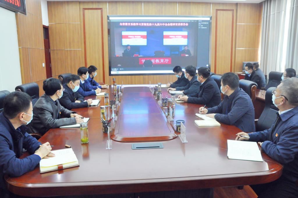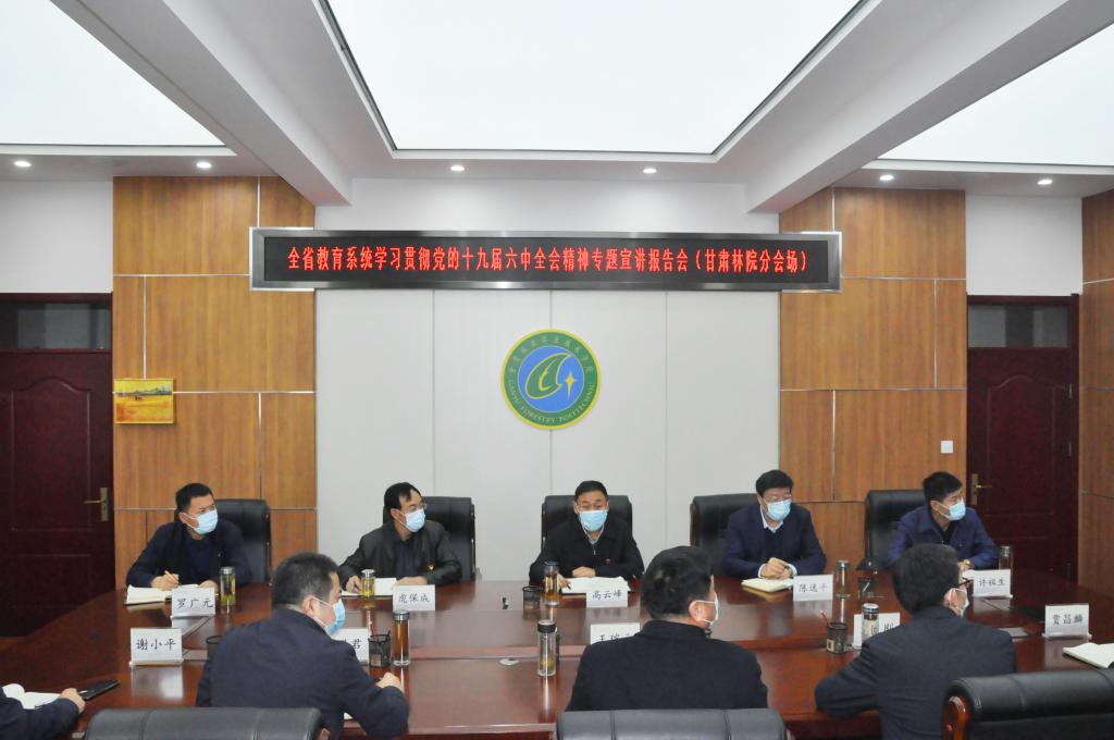 11月29日下午,全省教育系統(tǒng)學(xué)習(xí)宣傳貫徹黨的十九屆六中全會精神專題宣講報(bào)告會在蘭召開,省委教育工委書記、省教育廳黨組書記、廳長王海燕主持會議并講話,蘭州大學(xué)馬克思主義學(xué)院教授劉先春進(jìn)行專題輔導(dǎo)。甘肅林業(yè)職業(yè)技術(shù)學(xué)院黨委書記高云峰,院長陳逸平及黨委班子其他成員虎保成、許祖生、羅廣元、王瑞元、劉乃君、劉剛、謝小平、賈昌麟,各黨總支、各部門負(fù)責(zé)人,馬克思主義學(xué)院全體教師在學(xué)院分會場線上參會。