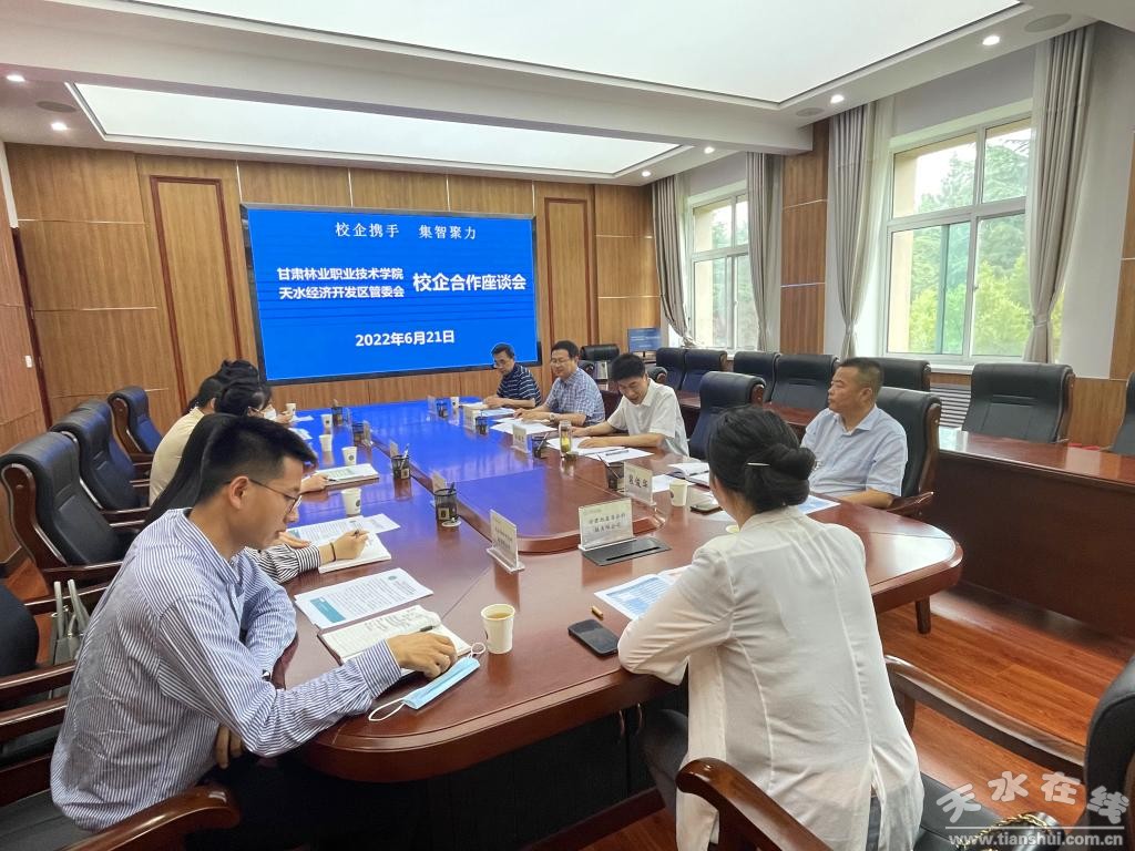 6月21日,甘肅林業(yè)職業(yè)技術學院與天水經(jīng)濟技術開發(fā)區(qū)管委會召開“產(chǎn)學研融合”對接座談會。天水天潤德人力資源服務有限公司、天水仕德人力資源市場服務有限公司、甘肅旭康材料科技有限公司、甘肅光軒高端裝備產(chǎn)業(yè)有限公司、甘肅旭盛顯示科技有限公司、天水華洋電子科技有限公司、天水程達電氣有限公司企業(yè)代表,學院招生就業(yè)處、信息工程學院和機電工程學院負責人參加。學院黨委副書記許祖生主持。