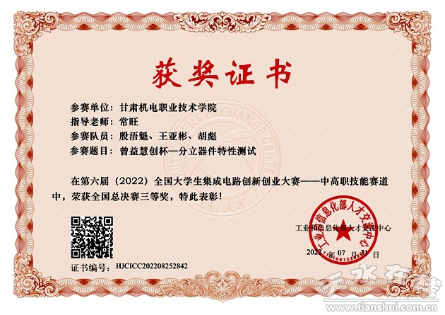 “全國大學生集成電路創(chuàng)新創(chuàng)業(yè)大賽”以服務產(chǎn)業(yè)發(fā)展需求為導向,以提升我國集成電路產(chǎn)業(yè)人才培養(yǎng)質量為目標,打造產(chǎn)學研用協(xié)同創(chuàng)新平臺,將行業(yè)發(fā)展需求融入教學過程,提升在校大學生創(chuàng)新實踐能力、工程素質以及團隊協(xié)作精神,助力我國集成電路產(chǎn)業(yè)健康快速發(fā)展。近日,全國大學生集成電路創(chuàng)新創(chuàng)業(yè)大賽——中高職賽道獲獎結果公布。學校電氣工程學院常旺老師指導,殷浯魁、王亞彬、胡彪等三名學生參賽的“分立器件特性測試”項目,全國大學生集成電路創(chuàng)新創(chuàng)業(yè)大賽——中高職賽道全國總決賽中榮獲三等獎。
