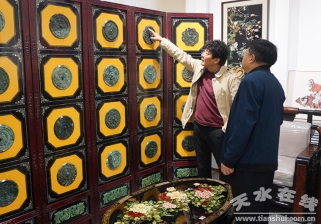 會(huì)后,大家一同參觀了天水飛天雕漆工藝家俱有限責(zé)任公司營(yíng)銷展廳與企業(yè)博物館。