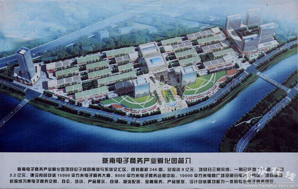 隴南華昌電子商務(wù)產(chǎn)業(yè)孵化園暨電子商務(wù)示范基地總占地面積為245. 8畝,總建筑面積約為35萬(wàn)平方米,停車位1450個(gè)。園區(qū)整體建成后共有線下展商1400個(gè),綜合性大型電商展區(qū)40000平方米,電商辦公區(qū)27000平方米,是集家具建材、五金機(jī)電、汽車配件、農(nóng)資用品、農(nóng)特產(chǎn)品、小商品、日用百貨、文化用品等產(chǎn)品展示、批發(fā)零售、電子商務(wù)經(jīng)營(yíng)及倉(cāng)儲(chǔ)物流、星級(jí)酒店、餐飲、休閑娛樂(lè)等功能于一體的一站式大型集貿(mào)商業(yè)中心。