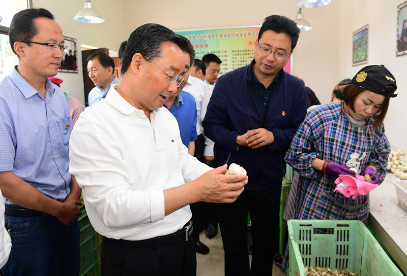 唐仁健先后來(lái)到永靖縣陳井鎮(zhèn)瞿家莊村、臨夏縣先鋒鄉(xiāng)盧馬村,調(diào)研了解百合產(chǎn)業(yè)發(fā)展、高原夏菜推廣種植及農(nóng)民專業(yè)合作社運(yùn)行等情況。他強(qiáng)調(diào),只有產(chǎn)業(yè)興旺,脫貧才能穩(wěn)得住、有后勁。要大力發(fā)展特色產(chǎn)業(yè),加強(qiáng)“三品一標(biāo)”建設(shè),打造自己的品牌,提高產(chǎn)品知名度、美譽(yù)度,加快做大做強(qiáng)特色產(chǎn)業(yè),帶動(dòng)農(nóng)民特別是貧困戶脫貧增收。要繼續(xù)深化農(nóng)村“三變”改革,讓群眾的土地、資金、技術(shù)等都變成股份,分享產(chǎn)業(yè)發(fā)展紅利。要繼續(xù)加快氣調(diào)庫(kù)建設(shè),調(diào)峰錯(cuò)時(shí),抓實(shí)農(nóng)業(yè)保險(xiǎn)全覆蓋,為貧困群眾增收多設(shè)幾道“防護(hù)墻”。要真查、細(xì)查、反復(fù)查,無(wú)死角無(wú)遺漏,確!3+1”脫貧任務(wù)真落實(shí)、真清零。