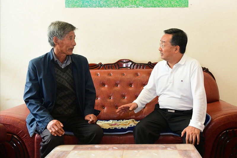 調(diào)研期間,唐仁健還來(lái)到臨夏縣井溝鄉(xiāng)大塬頂村,看望慰問(wèn)老黨員康正福、王居有。唐仁健說(shuō),你們當(dāng)過(guò)村支書(shū)、村主任,帶領(lǐng)群眾發(fā)展生產(chǎn),今天的好日子有你們打下的基礎(chǔ),黨和人民不會(huì)忘記。老黨員深情講述了村里的巨大變化,說(shuō)現(xiàn)在群眾的日子越過(guò)越好了。唐仁健說(shuō),習(xí)近平總書(shū)記要求我們“不忘初心、牢記使命”,我們共產(chǎn)黨人的初心使命就是為人民服務(wù),讓群眾過(guò)上好日子,我們一起加倍努力,讓大家的日子越過(guò)越紅火。