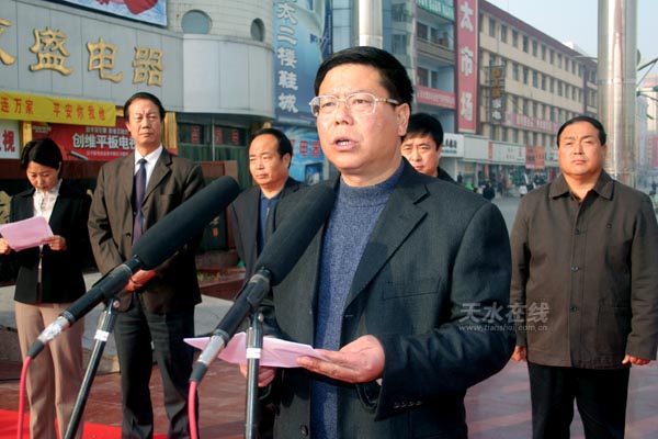 區(qū)委副書(shū)記賈應(yīng)珍代表區(qū)四大組織作了重要講話。他說(shuō),“電視進(jìn)萬(wàn)家工程”是中央宣傳部、中央文明辦、國(guó)家廣電總局實(shí)施的文化建設(shè)重點(diǎn)項(xiàng)目,是一項(xiàng)惠及千家萬(wàn)戶、深受貧困家庭歡迎的民心工程。在紀(jì)念紅軍長(zhǎng)征勝利70周年之際,中央宣傳部、中央文明辦、國(guó)家廣電總局決定開(kāi)展的“電視進(jìn)萬(wàn)家工程”活動(dòng),充分體現(xiàn)了黨和國(guó)家對(duì)共和國(guó)功臣和當(dāng)年支持過(guò)紅軍長(zhǎng)征的群眾無(wú)微不至的關(guān)懷。希望各鄉(xiāng)鎮(zhèn)、各單位要把這項(xiàng)活動(dòng)作為“引領(lǐng)千萬(wàn)家、文明千萬(wàn)家”的政治任務(wù),以強(qiáng)烈的責(zé)任感,認(rèn)真做好電視贈(zèng)送工作,嚴(yán)格按照中宣部、中央文明辦、國(guó)家廣電總局贈(zèng)送電視的要求和贈(zèng)送 范圍,把電視機(jī)及時(shí)送到受贈(zèng)對(duì)象家中,讓黨的溫暖進(jìn)萬(wàn)家,精神文明進(jìn)萬(wàn)家,科技文化進(jìn)萬(wàn)家,把這項(xiàng)惠民工程辦好辦實(shí),引導(dǎo)全區(qū)廣大群眾增強(qiáng)建設(shè)美好家園的決心和信心,為建設(shè)社會(huì)主義新農(nóng)村努力奮斗,為全面建設(shè)小康新麥積做出積極的貢獻(xiàn)。