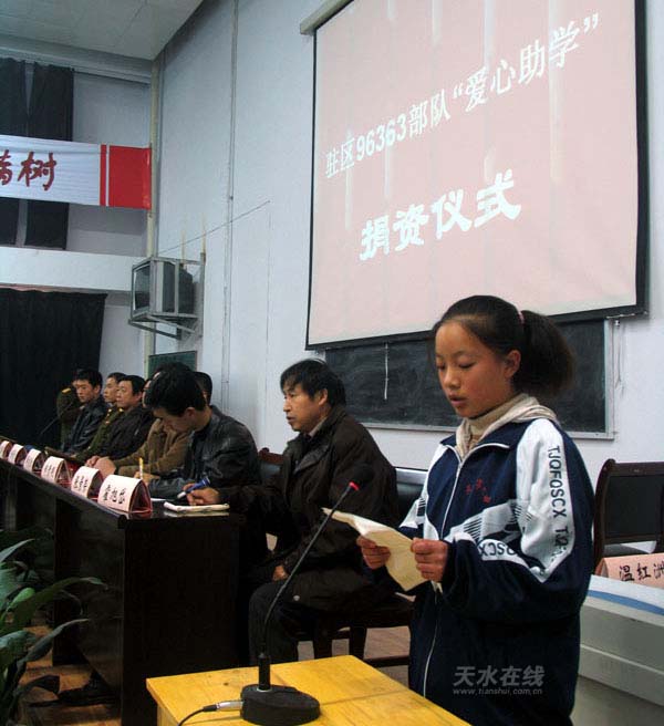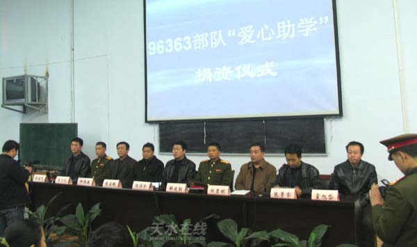 駐區(qū)96363部隊(duì)政治部主任解建勛、麥積區(qū)委副書(shū)記楊保珍和麥積區(qū)教育局、市二中、團(tuán)區(qū)委、雙擁辦相關(guān)負(fù)責(zé)同志及市二中部分師生代表參加了捐資儀式。(麥積區(qū)委宣傳部 汪成保)