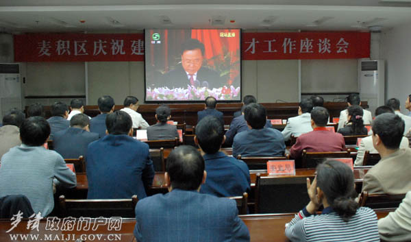 9月30日上午,麥積區(qū)四大組織在家領導張克強、賈應珍、馬兆讓、楊續(xù)祥、李小敏、臧志軍、謝筱會、張思佳、李加峰、馬麗宏、程鵬、邵長鋒、楊鐵森、汪懷定、屈光平、毛蓮香等在政府八樓會議室集中收看了甘肅省慶祝新中國成立60周年大會現(xiàn)場直播,認真聽取了省委書記、省人大常委會主任陸浩作的重要講話,并就講話精神進行了熱烈討論 。全區(qū)各部門、各單位也都認真組織廣大干部群眾收看了大會直播。。