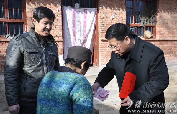 1月27日下午,麥積區(qū)政協(xié)主席賈應(yīng)珍、副主席陳新宇帶領(lǐng)區(qū)政協(xié)辦、區(qū)民政局和計(jì)生局負(fù)責(zé)同志,深入甘泉鎮(zhèn)廟溝、峽門、西枝、甘江、玉蘭、朝陽等村,對(duì)計(jì)劃生育二女困難戶和生活困難群眾進(jìn)行了慰問,并給他們送去了清油、棉被、面粉等生活用品和慰問金。