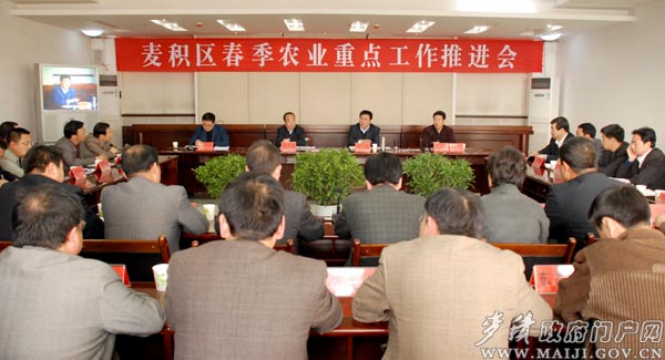 為了進(jìn)一步推動(dòng)春季農(nóng)業(yè)重點(diǎn)工作進(jìn)程,迅速掀起春季農(nóng)業(yè)生產(chǎn)工作高潮,3月12日下午,麥積區(qū)召開春季農(nóng)業(yè)重點(diǎn)工作推進(jìn)會(huì)。區(qū)委書記蒲軍,區(qū)委副書記、區(qū)長張克強(qiáng),區(qū)委副書記馬兆讓,區(qū)委常委、副區(qū)長謝筱會(huì)出席會(huì)議。