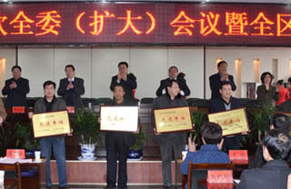 蒲軍指出,去年我區(qū)各方面工作進(jìn)展順利、成效明顯,特別是各級(jí)各部門按照區(qū)委、區(qū)政府年初提出的分別抓出1—2個(gè)在全市具有引領(lǐng)性的典型,干出1—2件優(yōu)勢(shì)突出、名列前茅工作的要求,創(chuàng)出了一批在全市具有典型引領(lǐng)的特色和亮點(diǎn)。在城鄉(xiāng)一體化發(fā)展方面,十大重點(diǎn)建設(shè)項(xiàng)目和300畝土地出讓權(quán)的確定、城市環(huán)境衛(wèi)生整治、舊城改造大面積突破、城市亮化;在“三農(nóng)”工作方面,農(nóng)業(yè)種植結(jié)構(gòu)調(diào)整、蔬菜大棚建設(shè)、花牛蘋果推介、興辦龍頭企業(yè)、土地流轉(zhuǎn)、土地開發(fā)整理項(xiàng)目;在工業(yè)方面,主動(dòng)走訪并加強(qiáng)與駐區(qū)企業(yè)的聯(lián)系;在交通建設(shè)方面,農(nóng)村自建道路及養(yǎng)護(hù)管理;在旅游發(fā)展方面,實(shí)施鄉(xiāng)村清潔工程、“農(nóng)家樂”改造提升;在項(xiàng)目爭取方面,有組織集體跑項(xiàng)目;在民政工作方面,加強(qiáng)軍地聯(lián)誼,“雙擁模范城區(qū)”四連冠爭創(chuàng);在黨建工作方面,推行黨建工作項(xiàng)目化管理、“麥積先鋒”黨建品牌創(chuàng)建、鄉(xiāng)鎮(zhèn)(街道)黨(工)委書記一年兩次黨建述職、村干部大規(guī)模培訓(xùn)、村級(jí)陣地建設(shè);在黨風(fēng)廉政建設(shè)方面,開展“雙爭雙好”活動(dòng);在政法工作方面,平安創(chuàng)建、人防物防技防;在宣傳工作方面,思想政治建設(shè)、對(duì)外宣傳、群眾文化活動(dòng);在統(tǒng)戰(zhàn)工作方面,成立全市首家黨外知識(shí)分子聯(lián)誼會(huì);對(duì)“市委書記、市長留言板”辦理在全市率先出臺(tái)了督辦制度等等,都在全市具有一定影響和領(lǐng)先水平。同時(shí),全區(qū)農(nóng)業(yè)和農(nóng)村重點(diǎn)工作、組織工作特色創(chuàng)新、思想政治建設(shè)、社會(huì)治安綜合治理等在全市年度考核中名列前茅,我區(qū)被授予“全國計(jì)劃生育優(yōu)質(zhì)服務(wù)先進(jìn)單位”、“全省文明區(qū)標(biāo)兵”、“天水市思想政治工作先進(jìn)縣區(qū)”、榮獲2010年度全市社會(huì)治安綜合治理工作優(yōu)秀獎(jiǎng)和全市組織工作特色創(chuàng)新一等獎(jiǎng)。這些成績的取得,是市委、市政府和區(qū)委正確領(lǐng)導(dǎo)的結(jié)果,是區(qū)委充分發(fā)揮和調(diào)動(dòng)各級(jí)組織的積極性、各鄉(xiāng)鎮(zhèn)各部門勤奮工作、狠抓落實(shí)的結(jié)果,也是廣大干部職工群眾主動(dòng)參與、密切配合的結(jié)果。
