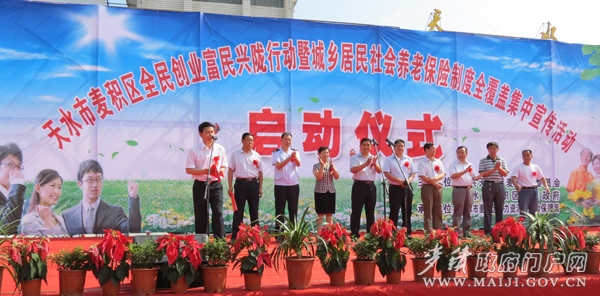 (麥積區(qū)舉行全民創(chuàng)業(yè)富民興隴行動(dòng)暨城鄉(xiāng)居民社會(huì)養(yǎng)老保險(xiǎn)全覆蓋集中宣傳活動(dòng)啟動(dòng)儀式)