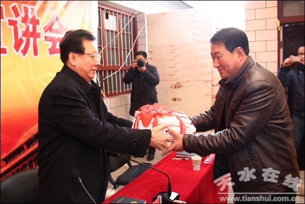 宣講會(huì)現(xiàn)場(chǎng),馮健身還為麥積村村干部贈(zèng)送了黨的十八大精神輔導(dǎo)讀本。